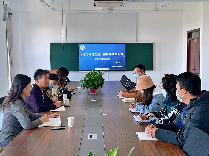 为更好地落实学院党委部署,积极做好帮扶工作,10月18日上午,财务处处长宋春初带领周晴晴、刘甜甜一行三人到高新区校区召开座谈会,座谈会由计算机系主任贾冬青主持,计算机系教师代表参加。 宋春初传达了财务处召开...