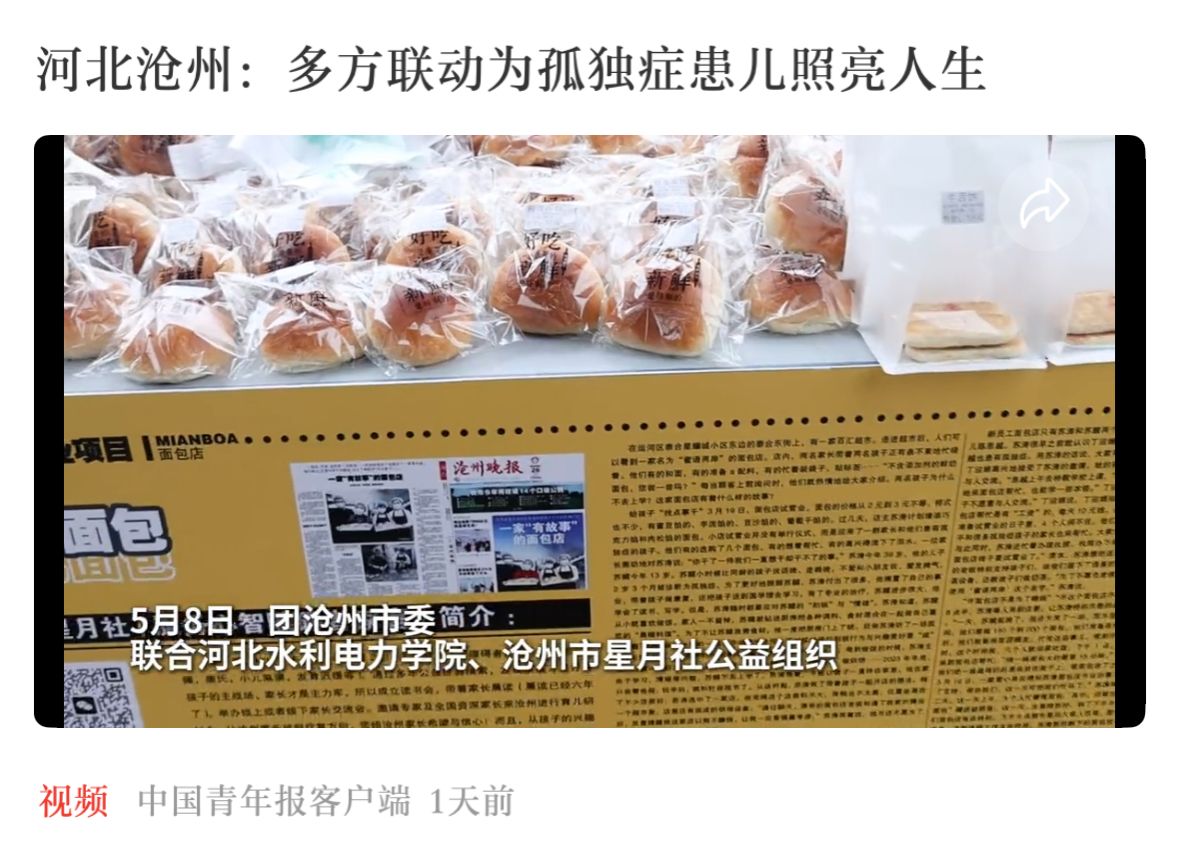 5月8日下午,共青团沧州市委联合我校团委、沧州市孤独症患儿家庭关爱团队星月社共同在我校第一食堂门口举办面包义卖活动。5月17日,中国青年报客户端报道了本次主题义卖活动,5月20日,《中国青年报》第二版以《河北沧州多方联动 为孤独症患儿照亮人生》为题对此次活动进行专题报道,有效提升了我校在公益领域的社会美誉度。今后,我校将继续扎实推进“小橘灯”助残接力计划,积极组织各类社会公益活动,重点关注孤独症患儿等特殊群体,...
