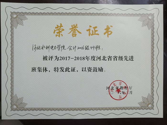 近期,河北省教育厅开展2017—2018学年省级三好学生、优秀学生干部和先进班集体评选工作。我校经济管理学院会计1644班荣获省级先进班集体称号,物流1618班孙兴智、商务英语1624班冯帆同学荣获省级三好学生称号。 会计...
