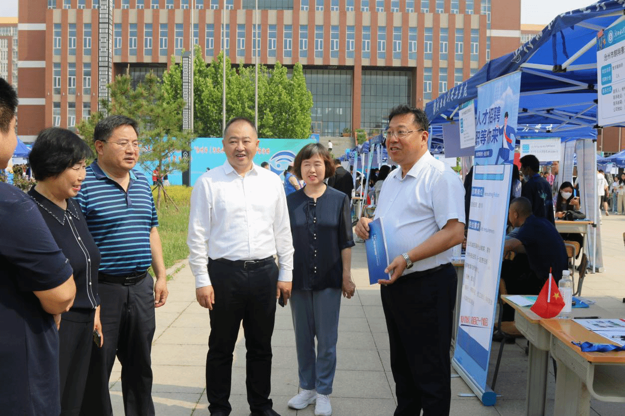 招聘会期间,沧州市政协副主席、民建市委主委李桂敏,民建河北省委社会服务部部长洪立江,沧州市人力资源和社会保障局二级调研员徐刚现场观摩指导,详细询问和了解参会企业发展和人才需求、求职大学生就业实际需要等情况。学校副校长王建明对参会领导及用人单位的到来表示热烈欢迎,向支持学校就业工作的社会各界表示感谢,同时就今后的合作发展进行了充分的交流。