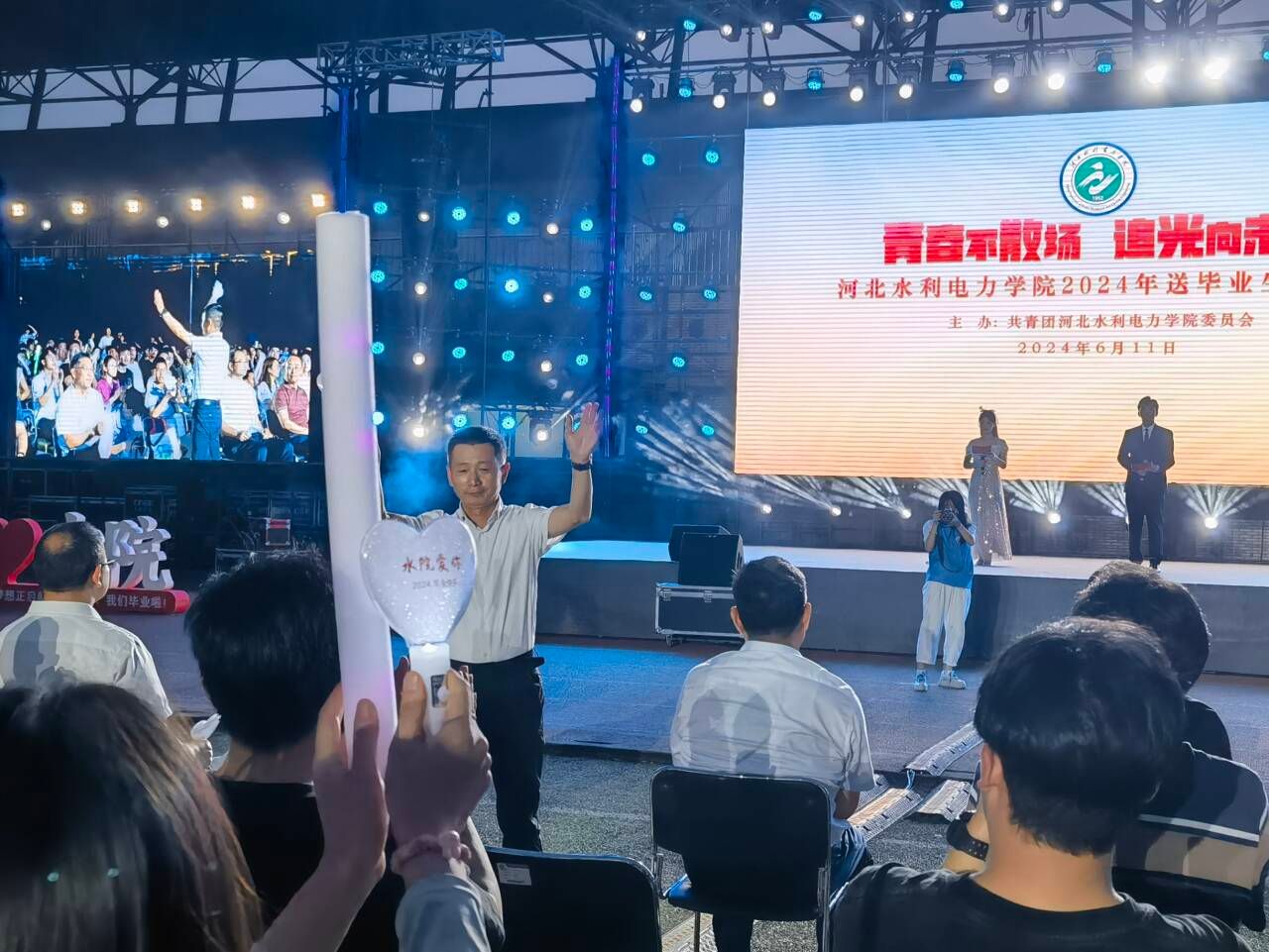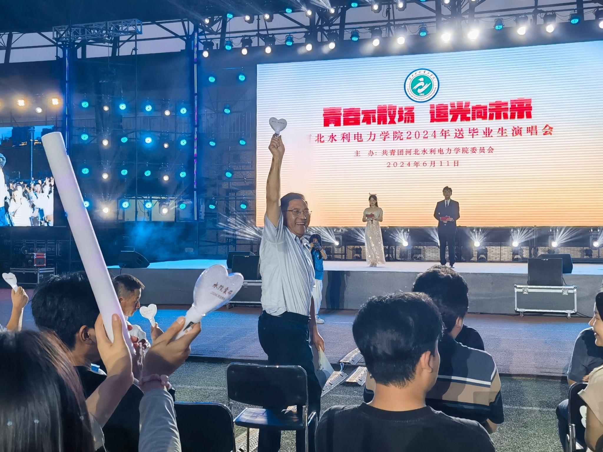 6月11日晚19:30,由校团委主办的“青春不散场 追光向未来”广发体育官方网站,广发体育(中国)有限公司,2024年送毕业生演唱会在风雨操场精彩上演。党委书记张效松,党委副书记、校长王滨,副校长杨凯,各部门领导老师与3000余名学生共同观看了演出,一起度过了这场温暖感动的青春盛宴。