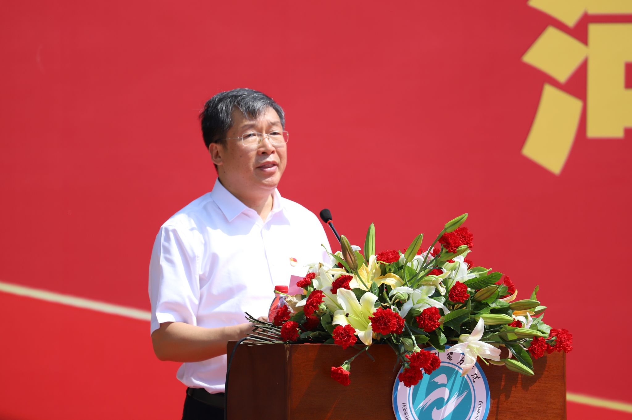学校各中层单位正职、"两优一先"受表彰人员、党员代表,以及建设指挥部、施工单位、监理单位代表也参加了仪式。