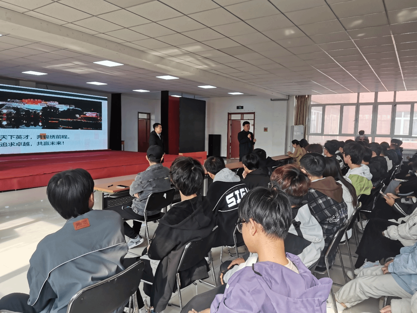 张局长首先就西藏的文化底蕴、企业背景、企业文化、发展前景以及对员工的管理文化等方面进行了详细宣讲,对报名、笔试、面试、确定录取意等报考流程进行了重点介绍,同学们对国家电网西藏电力公司兴趣浓厚,很多同学对自己关心的问题进行了现场提问,宣讲现场热火朝天。